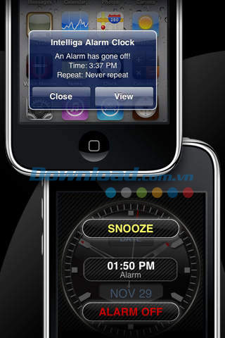 Intelliga Alarm Clock hỗ trợ iPhone, iPad và iPod Touch chạy hệ điều hành iOS 3 hoặc iOS 4.