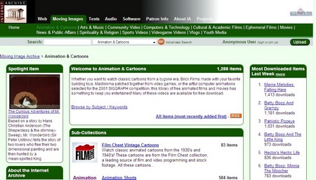 Thư viện Moving Image của trang này chứa hàng ngàn bộ phim kỹ thuật số, nhiều video có thể download miễn phí. Những video này được phân loại thành các nhóm như “computers, sports, youth media, independent news, spirituality” v.v…