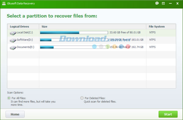 iSkysoft Data Recovery là một ứng dụng chuyên nghiệp giúp người dùng khôi phục lại mọi dữ liệu bị mất hoặc xóa rất nhanh chóng trong bất kỳ tình huống nào.