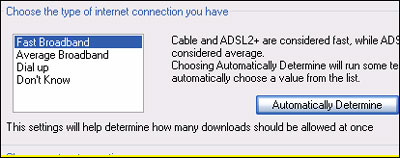 Trong khung Choose the type of internet connection you have, bạn chọn Fast Broadband để tăng tốc kết nối dữ liệu, sau đó bấm nút Automatically Determine để hệ thống chọn thông số kết nối cho bạn.