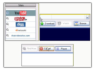Bây giờ, chương trình sẽ khởi động lại và một cửa sổ mới sẽ hiện ra, trong khung Sites- bạn nhấn chuột lên biểu tượng của trang web muốn tìm kiếm video, nhạc từ đó. Lúc đó, trong khung bên phải sẽ hiện ra những thông tin liên quan.