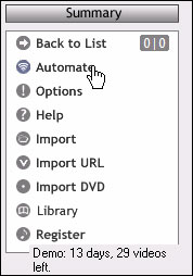 Bạn cũng có thể thiết lập để hệ thống tự động tải những video quan tâm trong các trang web kia về bằng cách trong khung Summary, bạn nhấn Automate, ở cửa sổ hiện ra- khung đầu tiên bạn chọn nhóm các video tải về (chẳng hạn Top 1 là tải video đầu tiên, Top 10 là tải 10 video đầu tiên,...). Khung from là địa chỉ tải, bạn hãy chọn cho mình một mục- và hệ thống sẽ tiến hành tải file từ địa chỉ đó.