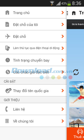 Trên thanh menu (bấm vào biểu tượng 3 dấu ngạch ngang trên cùng bên trái), ứng dụng cung cấp cho bạn khá nhiều tiện ích như: quản lý đặt chỗ, đặt chỗ, làm thủ tục qua điện thoại di động, xem tình trạng chuyến bay, xem các chuyến bay giá rẻ được đề xuất, trong mục cài đặt bạn có thể thêm thông tin và quản lý thông tin trong hồ sơ cá nhân.