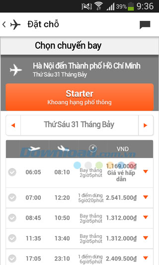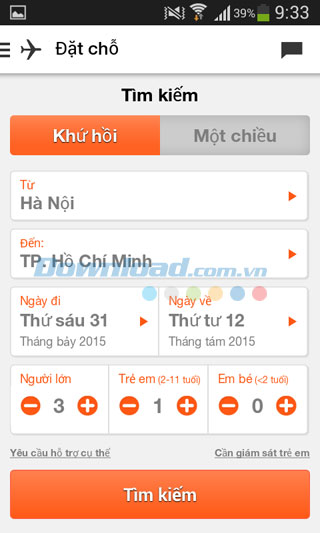 Việc đặt chỗ hết sức đơn giản, bạn cần tìm kiếm chuyên bay, nhập địa điểm, thời gian đi, thời gian về và số lượng hành khách đi kèm. Sau đó chỉ cần tìm kiếm chuyến bay phù hợp với túi tiền và thời gian của bạn. Các chuyến bay đều được thống kê rõ ràng và rất cụ thể về thời gian khởi hành, hạ cánh, thời gian bay và giá vé.