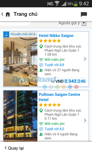 Ngoài ra, người dùng có thể đặt phòng khách sạn ngay trên ứng dụng thông qua Agoda. Bạn cũng có thể tải ứng dụng tìm kiếm và đặt phòng khách sạn giá rẻ Agoda cho Android bằng cách bấm vào đường link này. Nhờ liên kết của Jetstar với Agoda, bạn có thể dễ dàng tìm kiếm khách sạn giá rẻ ở Việt Nam và tất cả các quốc gia trên thế giới mà không phải rời ứng dụng.