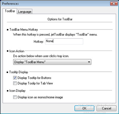 Bên cạnh đó các nút trên thanh công cụ còn có thể được tăng hay giảm kích cỡ với bẩy mức độ khác nhau khiến cho người sử dụng dễ đọc và quan sát chúng hơn. jetToolBar hoàn toàn nằm trong tầm tay của bạn, thanh công cụ hỗ trợ tính năng tùy biến toàn diện cho phép bạn có thể kéo-và-thả các nút bấm hay mục khác nhau một cách khá dễ dàng hoặc bạn có thể khóa cứng thanh công cụ vào một góc nào đó của màn hình desktop. Nếu bạn có một chiếc microphone bạn còn có thể chạy các phần mềm với âm thanh riêng của bạn.