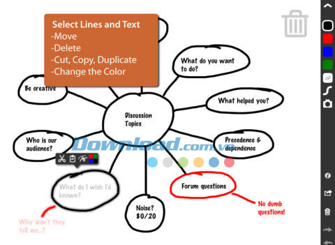 Ứng dụng Jot! Whiteboard Free cho phép xây dựng biểu đồ tư duy các ý tưởng của bạn trên máy tính bảng iPad một cách tự nhiên. Về cơ bản, sơ đồ tư duy hoạt động hiệu quả hơn các hộp thoại kết nối. Ngoài ra, biểu đồ tư duy cho phép tương tác qua các thao tác chạm, kết nối các chi tiết đã vẽ, có thể mở khóa các kết nối nhanh hơn biểu đồ hiệu suất tự động.