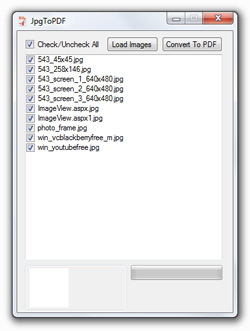 JpgToPDF là một ứng dụng dễ sử dụng sẽ giúp bạn chuyển đổi một hoặc nhiều tập tin hình ảnh JPEG / JPG thành tài liệu PDF. Chương trình có thể tự động vẽ lại tỉ lệ hình ảnh để vừa với trang PDF. JpgToPDF có thể thực thi mà không cần cài đặt bất cứ phần mềm về PDF nào. Để chuyển đổi bạn chỉ cần nhấp vào nút Load Image để nạp hình ảnh, chọn những hình ảnh bạn muốn rồi nhấp vào nút Convert To PDF, bạn nhập tên và chọn thư mục lưu của tập tin PDF được tạo ở cửa sổ hiện ra và nhấp vào Save.