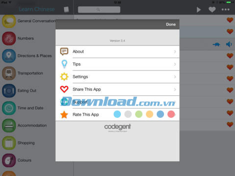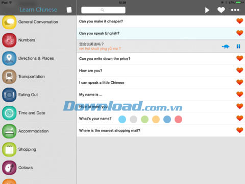 Learn Chinese for iOS giúp người dùng dễ dàng sử dụng sách cụm từ tiếng Trung di động, hỗ trợ khách du lịch tại các quốc gia nói tiếng Trung và những người yêu thích học tiếng Quan Thoại có một khởi đầu thật tốt với ngôn ngữ mới này.