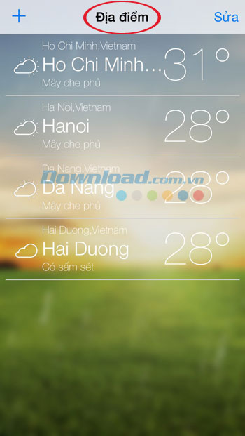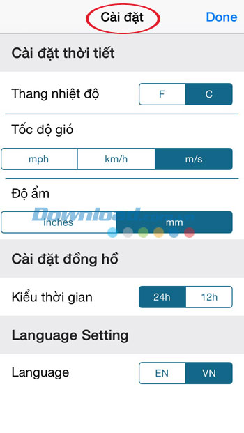 - Các tùy chọn chia sẻ: chia sẻ thời tiết với bạn bè qua mạng xã hội.