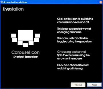 Sau khi tài khoản của bạn đã được thiết lập, bạn có thể bắt đầu xem các chương trình TV từ LiveStation. Một màn hình khác cũng sẽ được khởi động cạnh màn hình chính, hướng dẫn cho bạn một vài cách sử dụng chương trình. Nếu không muốn, bạn có thể đóng cửa sổ này lại và cũng có thể sử dụng lại các hướng dẫn này bất kì lúc nào từ menu trợ giúp.