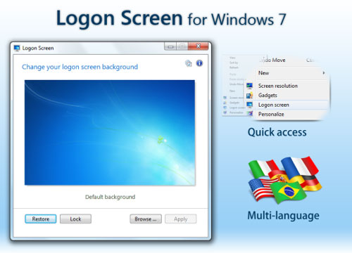 Logon Screen là một chương trình nhỏ gọn và đơn giản giúp bạn có thể thay đổi màn hình khởi động của Windows 7. Một điểm giúp ứng dụng này khác biệt so với các ứng dụng thay đổi màn hình khởi động khác là khả năng tiếp hợp với menu context của Windows 7. Ngoài ra, chương trình này cũng hỗ trợ một số ngôn ngữ.
