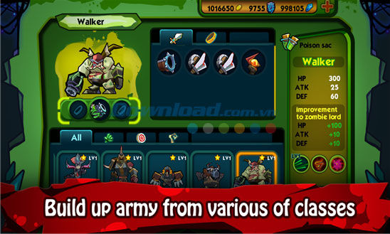 Thêm vào đó, bạn cần xây dựng đội quân Zombie của mình theo nhiều lớp. Bạn có thể biến con người thành zombie và những loại zombie đặc biệt với sức mạnh đặc biệt hơn. Điểm hấp dẫn của game này là người chơi có thể tự khám phá và trau dồi nhiều kỹ năng chủ động và chủ động.
