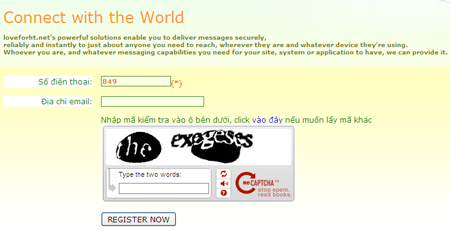 Sau đó bạn kích vào nút Register, mật khẩu kích hoạt sẽ được gửi tới số điện thoại của bạn và bây giờ bạn có thể đăng nhập để gởi tin nhắn. Mỗi ngày, bạn được phép gửi 5 tin nhắn miễn phí.