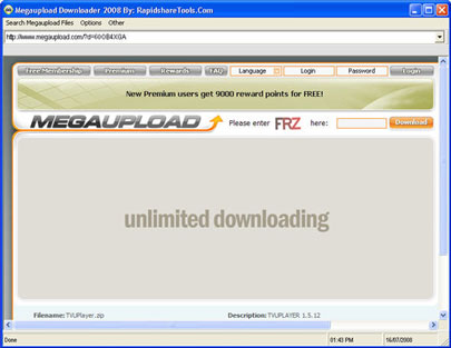Megaupload Downloader là một ứng dụng đơn giản được phát triển để tránh quảng cáo, pop-up....khi bạn nhận được mỗi khi bạn cố gắng tải về từ hosting services.