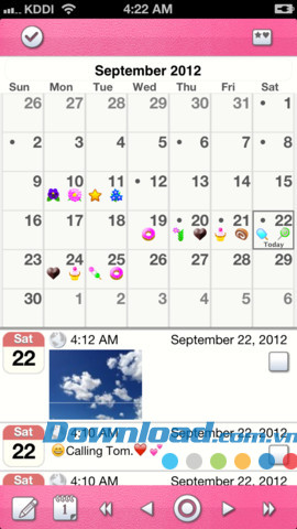 - Hỗ trợ lịch mỗi trang là nhật ký của một ngày. Ứng dụng cũng hỗ trợ thay đổi thứ tự các ghi chú.