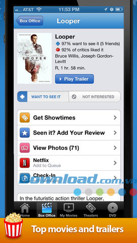 Movies by Flixster for iOS là ứng dụng giới thiệu bình luận phim, trailer và thời gian chiếu phim.