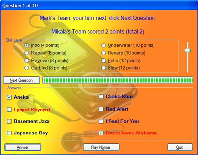 MP3 Quiz giống như một trò chơi, ở mỗi track được chơi, bạn phải đoán chính xác tên nghệ sĩ hay bài hát đang chạy. Các đoạn trích có thể được chơi bằng cách sử dụng 1/8 hiệu ứng: Plays Intro's, Reversed, Slow, Echo.