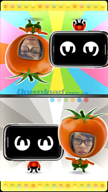 Đầu tiên, game Mucho Party sẽ yêu cầu bạn chọn một hình đại diện ngộ nghĩnh như đồng hồ, quả cà chua, quả táo, điện thoại, ấm trà hay quả chanh để tạo hình cho nhân vật chính. Sau đó, hãy chụp 3 bức ảnh chân dung tượng trưng cho 3 biểu cảm gương mặt: cười tươi, buồn và cưởi mỉm để tùy biến avatar.