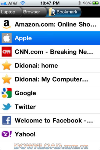 - Trình duyệt: truy cập bookmark, bao gồm lược sử trình duyệt