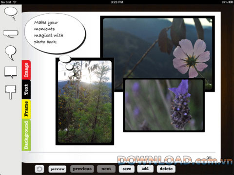 Ngoài ra, My Photo-Book còn hỗ trợ chỉnh sửa ảnh, chèn và chỉnh sửa text vào ảnh, thêm khung ảnh tùy chỉnh và hình nền hấp dẫn.