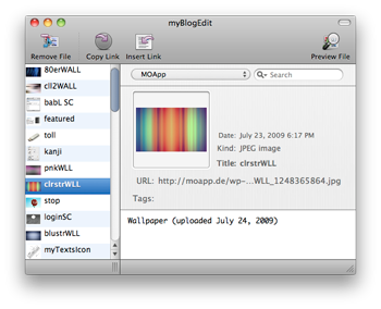 myBlogEdit có hỗ trợ nhiều tài khoản (multiple accounts), có trình quản lý các file media nhanh gọn, mạnh mẽ, và một trong những chức năng nổi bật nhất là khả năng thay đổi kích cỡ, chuyển đổi định dạng, upload các file ảnh cực kỳ nhanh chóng chỉ với một vài thao tác, vì vậy người sử dụng đôi khi không cần dùng đến những phần mềm đồ họa như Photoshop hoặc Pixelmator nữa.