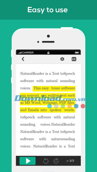 - Sử dụng thao tác đơn giản là chạm vào một câu, sau đó NaturalReader Text to Speech for iOS sẽ tự động đọc to từ điểm đó.