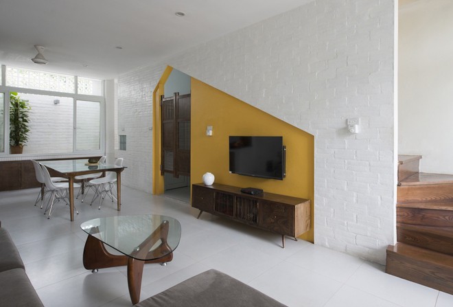 Thiết kế độc đáo của ngôi nhà giúp lấy sáng, thông gió và tạo chiều sâu cho bếp và phòng ăn (vốn dĩ diện tích rất hẹp).