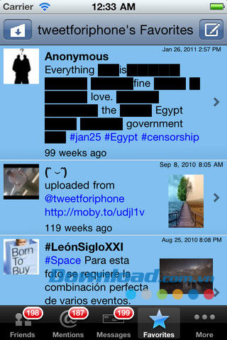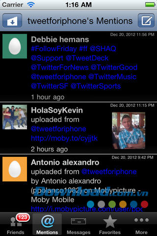 - Xem trước ảnh chia sẻ trong khi cuộc timeline (TwitPic, Mobypicture, Twitrpix, yFrog).