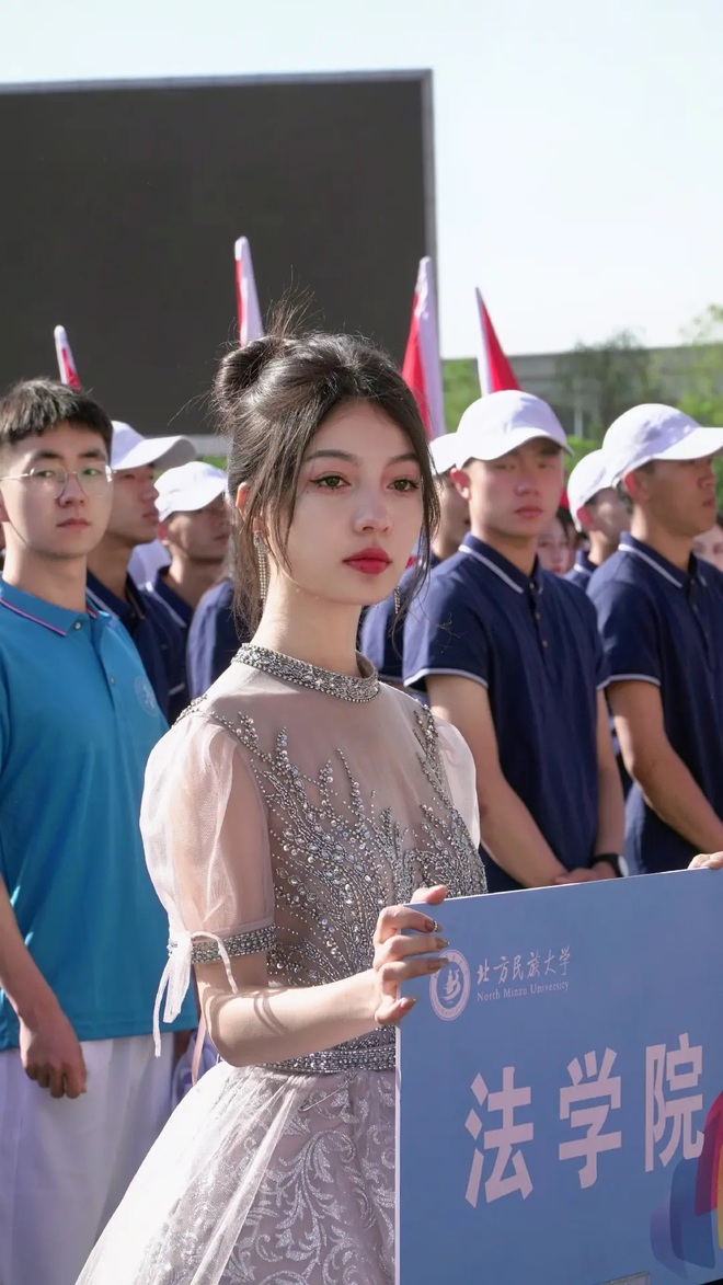 Mới đây, một hội thi đấu thể thao ở trường Đại học Dân tộc phía Bắc (Trung Quốc) đã được tổ chức. Nhưng người bất ngờ trở nên nổi tiếng sau một đêm không phải sinh viên tham gia thi đấu mà chỉ là một “nhân vật phụ” - nữ sinh cầm biển trên sân trường. Tất cả lý do là vì ngoại hình và khí chất vô cùng xinh đẹp của cô nàng.