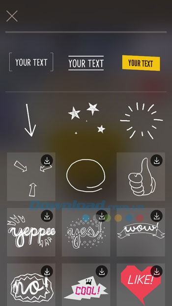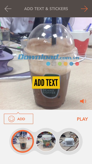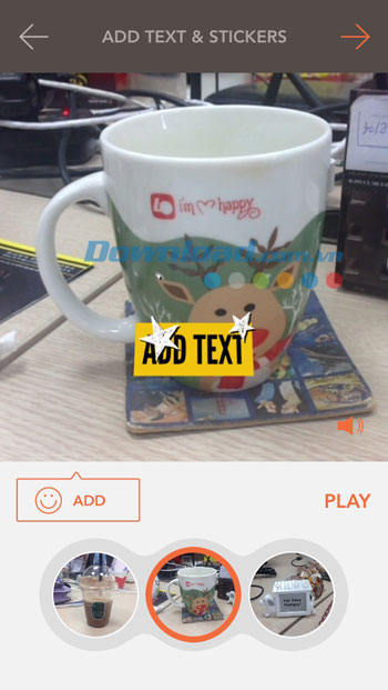 Ngoài việc chèn thêm chú thích ảnh, người dùng Nutshell Camera còn có thể chọn từ thư viện sticker hoạt hình kiểu hiệu ứng động để kết nối 3 bức ảnh mượt mà hơn. Giờ đây, bạn đã có một bộ phim ngắn khá độc đáo để chia sẻ với mọi người qua mạng xã hội, thư điện tử hay tin nhắn!