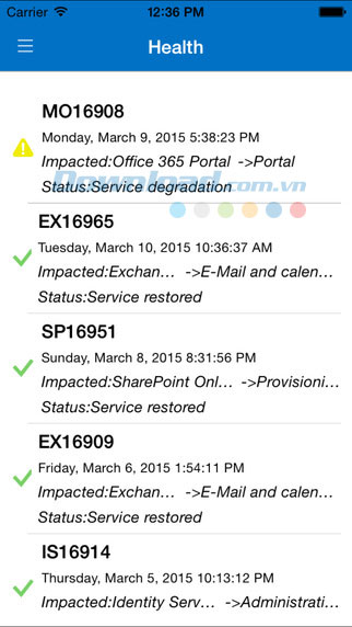 Sử dụng Office 365 Admin miễn phí để xem thông tin về dịch vụ và cập nhật trạng thái bảo trì Office 365, trực tiếp từ điện thoại smartphone hay máy tính bảng iDevice của bạn.