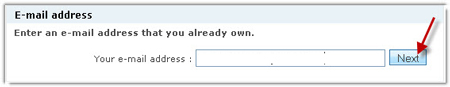 -Nhập vào địa chỉ email tại ô Your e-mail address rồi nhấn Next (e-mail của gmail hoặc yahoo cũng được);