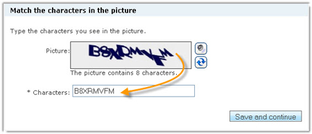 -Tiếp tục, bạn hãy nhập mã an toàn gồm tám kí tự tại ô Characters của mục Match the characters in the picture rồi nhấn Save and continue và để hoàn tất quá trình đăng ký bạn nhấn I accept.