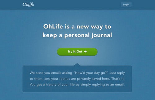 Quá bận rộn nhưng vẫn muốn cập nhật cho nhật ký của bạn, có thể nhờ cậy đến Ohlife. Dịch vụ này sẽ chủ động gửi một email mỗi ngày yêu cầu bạn "kể" về một ngày của mình đã trải qua thế nào. Bạn chỉ cần trả lời email đó và tất cả nội dung sẽ được lưu lại.
