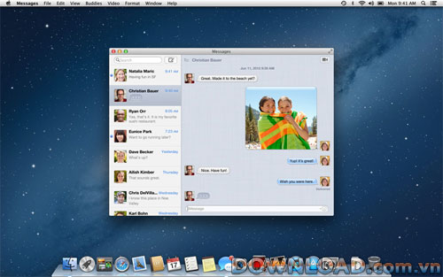 Với ứng dụng tin nhắn mới, người dùng có thể gửi tin nhắn, ảnh, video, danh bạ, đường dẫn web và tài liệu cho mọi người sử dụng Mac, iPhone, iPad và iPod Touch; bạn có thể bắt đầu cuộc hội thoại ở một thiết bị và tiếp tục với thiết bị khác.