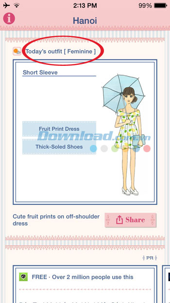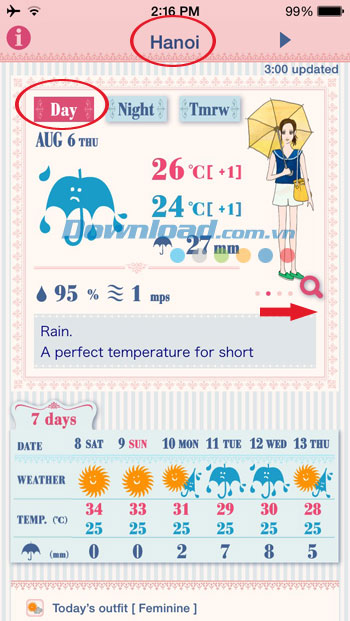 Trong kho ứng dụng Download.com.vn có rất nhiều công cụ cập nhật thông tin thời tiết cho iPhone, iPad và iPod Touch như Weather On, Weather Underground, PocketWeather... tất cả đều miễn phí, chính xác và tin cậy. Tuy nhiên, với Oshare Weather, chúng ta sẽ có một ứng dụng xem thời tiết đặc biệt, giao diện với tông màu phấn hồng đáng yêu và phong cách cổ điển rất được ưa chuộng, phù hợp với bạn gái yêu thích sự trẻ trung và tinh tế.