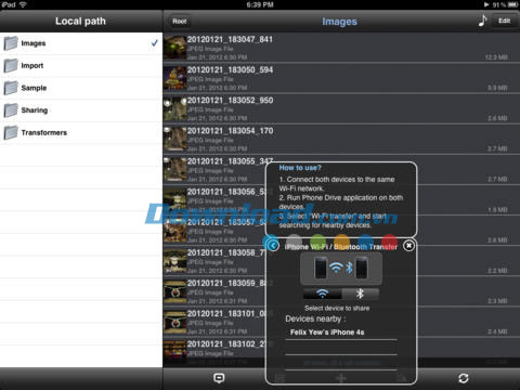 Chia sẻ tệp tin với các thiết bị iPhone, iPad khác thông qua kết nối Bluetooth hoặc WiFi với phần tìm kiếm tự động các thiết bị gần bạn nhất.
