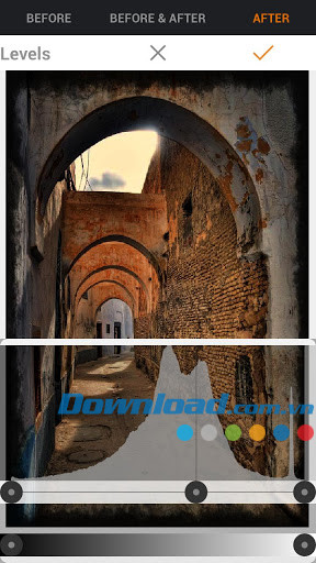 Bên cạnh đó, Photo Editor HDR FX còn cung cấp một công cụ chỉnh sửa ảnh quan trọng khác là Levels. Người dùng có thể nhận các kết quả chỉnh sửa chuyên nghiệp bằng cách điều chỉnh tông màu đen và trắng hoặc áp dụng điều chỉnh gamma bằng thao tác một chạm.