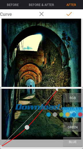 Ứng dụng cung cấp các công cụ tương tự như công cụ trong các ứng dụng ảnh desktop nổi tiếng khác. Một trong những công cụ hay sử dụng nhất trên desktop là tùy chỉnh đường cong. Thao tác này được thực hiện rất dễ dàng bằng ngón tay bạn, điều chỉnh đường cong trên các kênh màu đỏ, xanh lá và xanh dương, áp dụng trực tiếp trên kênh RGB.
