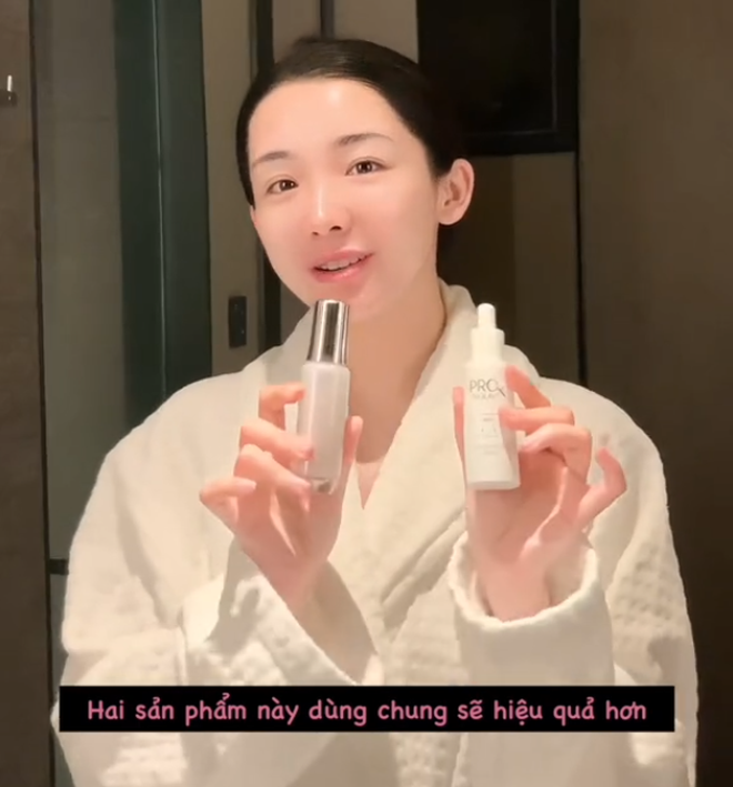 Bên cạnh OLAY White Radiance Niacinamide + Glycoxyl, "phú bà" Đào Hỷ Nhi dùng kết hợp thêm một em serum khác cũng đến từ OLAY mang tên ProX Nia-SDL AB5D. Cô cũng khẳng định rằng việc dưỡng da trở nên hiệu quả hơn khi dùng chung bộ đôi xịn xò này.