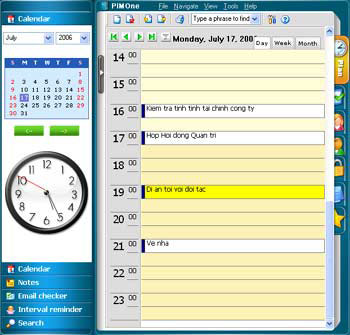 Nếu là sếp hay một người bận rộn, bạn sẽ muốn có một cô thư ký dễ bảo và nhanh nhẹn. PIMOne chính là đối tượng cần tìm vì bạn sẽ được nhắc việc hết sức chính xác và có thể "sai vặt" như tự động tắt máy tính, mở website, gửi e-mail... vào ngày, giờ nhất định.