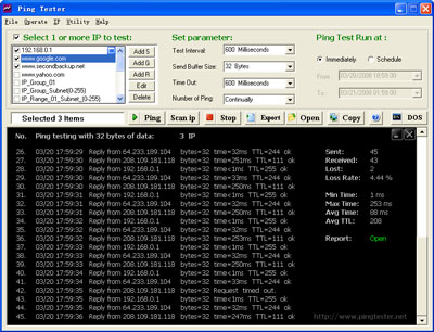 Ping Tester có thế lưu trữ các danh sách địa chỉ IP hay URL và kiểm tra các dòng lệnh mạng để đảm bảo hiệu suất làm việc của bạn và có thể dễ dàng ping kiểm tra chỉ với một cú nhấp chuột đơn giản.