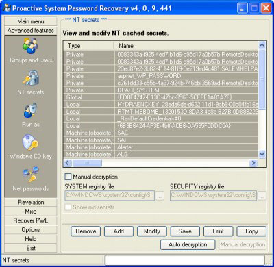 Proactive System Password Recovery là chương trình phục hồi password chuyên dụng chạy trên nền Windows . Với tính năng cực kỳ mạnh mẽ, Proactive System Password Recovery có khả năng lấy lại password cho bạn trong phần User logon, .NET Passport password, số serial của CD, phần mềm,...