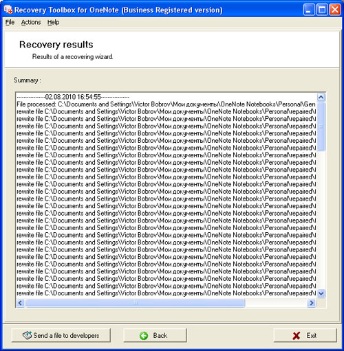 Recovery Toolbox for OneNote là công cụ khôi phục dành cho các file dữ liệu OneNote bị hỏng. Với giao diện đơn giản và trực quan, phần mềm này giúp người dùng sử dụng một số kỹ năng máy tính nhỏ nhằm khôi phục thành công các note bị hỏng từ file .ONE bị lỗi. Sử dụng phần mềm này rất dễ dàng: chọn một file bị lỗi, để chương trình phân tích cấu trúc của nó, thực hiện quá trình khôi phục dữ liệu và xem kết quả.