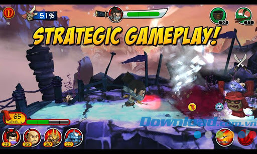 Trong phần này của trò chơi, bạn sẽ được làm quen với 3 nhân vật mới bao gồm Sorceress, sát thủ Kunoichi Assassin và Armored Ronin. Mỗi nhân vật sẽ có những chỉ số sức mạnh và kỹ năng khác nhau cho người chơi khám phá. Bạn chỉ có thể mở khóa các nhân vật này khi hoàn thành các mức trong trò chơi hoặc mua bằng tiền Glu trong game.