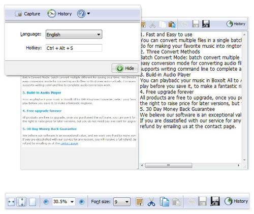 Boxoft Screen OCR là phần mềm rất dễ sử dụng cho phép bạn trích xuất bất kì khu vực nào trên màn hình máy tính, nhận dạng tất cả ký tự rồi lưu chúng theo định dạng file TXT. Công cụ thông minh này cho phép bạn chọn văn bản từ bất kì nơi nào trên màn hình, bao gồm cả những khu vực bạn không thể highlight bằng chuột, ví như các hộp thoại, các trang web được bảo vệ, các file PDF, message lỗi,…..