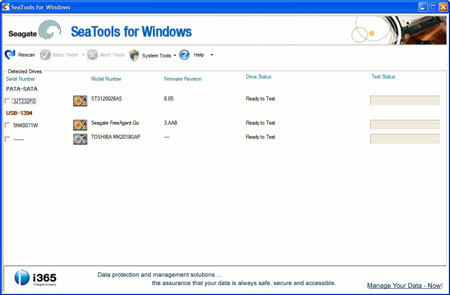 Sea Tools là một công cụ chuyên dụng và miễn phí cho phép bạn chẩn đoán nhanh các dấu hiệu để phát hiện và kịp thời xử lý các vấn đề gặp phải trên ổ cứng cố định cũng như các ổ cứng gắn ngoài. Chương trình tích hợp một vài chức năng thử nghiệm để kiểm tra môi trường vật lý trên đĩa cứng. Không giống với tên gọi, SeaTools hoạt động tốt với các sản phẩm của Seagte hay Maxtor và bất cứ ỗ đĩa nào không phải là Seagate.