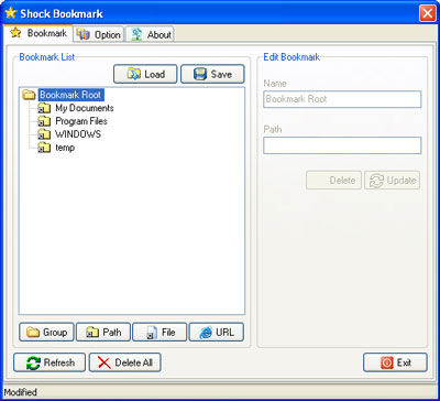 Muốn đưa thư mục, tập tin và ứng dụng vào danh sách truy xuất nhanh của chương trình, bạn chỉ việc nhắp chuột phải vào nó rồi chọn Shock Bookmark... / Bookmark Add/Delete. Còn với địa chỉ trang web, bạn cần mở cửa sổ thiết lập Option... để biên soạn. Cửa sổ này sẽ cho phép bạn thực hiện nhiều thao tác quản lý như: thêm mới, xóa bớt, tạo nhóm (Group), lưu và tải tập tin dự phòng, cùng các lựa chọn cách thức hoạt động cho chương trình. Bạn cũng có thể sao chép/di chuyển nhanh chóng tập tin, thư mục nào đó nằm lung tung tới thư mục hay sử dụng đã được đưa vào danh sách nhờ vào tính năng Copy To... / Move To...