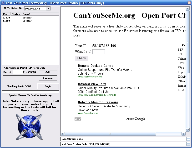 Sau khi đã hoàn tất, bạn hãy thử kiểm tra các trạng thái của các cổng được mở bằng cách chọn Test your Port forwarding trong mục Tools, khi chương trình báo Opened port success thì việc mở port của bạn đã thành công, ngược lại bạn nên kiểm tra lại chính xác thông số cổng hoặc thiết đặt lại tường lửa trên modem.